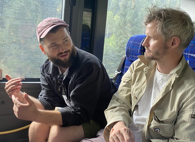 (photo below: Producer: Maks Pilasiewicz and Filmmaker: Quentin Miller on the bus to Grand Junction)